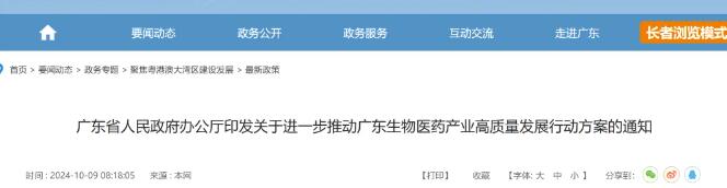 (10月9日),广东省人民政府办公厅印发《关于进一步推动广东生物医药产业高质量发展的行动方案》(下称《行动方案》)。