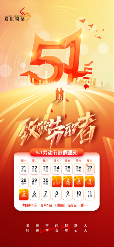 嘉盟医药 | 2025年五一劳动节放假通知-尊龙凯时网址